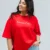 This embroidered oversized red T-shirt is made to keep you comfortable while standing out with bold style.